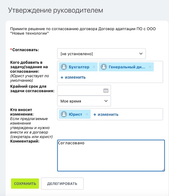 Для эффективного контроля и управления процессом согласования договоров, что позволяет сократить время и повысить прозрачность.