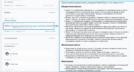 Система позволяет автоматически отправлять договоры на согласование нужным сотрудникам, с возможностью отслеживания статуса каждого этапа согласования.