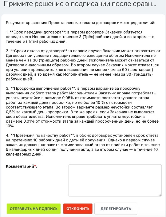 Вы сможете получать детальные отчеты о процессе согласования, что поможет вам контролировать эффективность работы и принимать обоснованные решения.